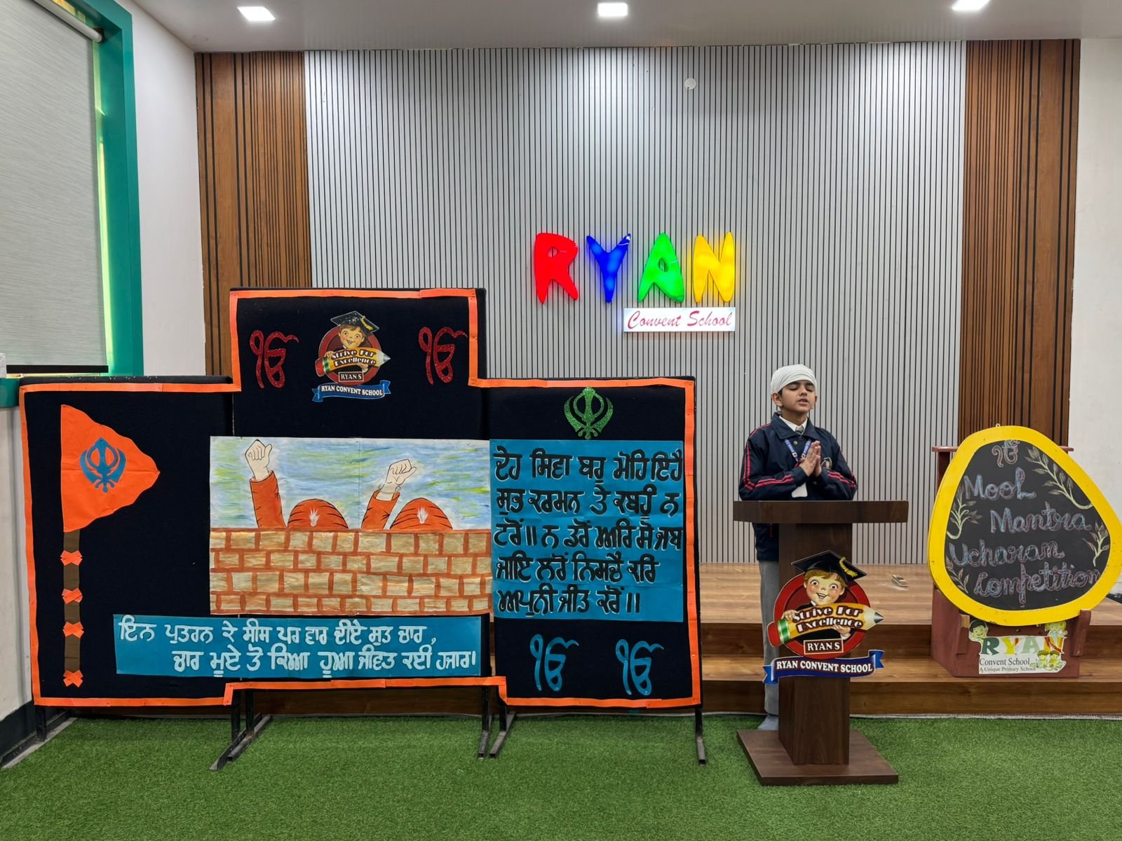 इस प्रतियोगिता में छात्रों ने बहुत ही शानदार प्रदर्शन किया और अपनी प्रतिभा का जौहर दिखाया। शहीद सप्ताह के तहत आयोजित इस प्रतियोगिता में छात्रों ने मूल मंत्र के उच्चारण को सटीकता से प्रस्तुत किया और निर्णायकों को प्रभावित किया। छात्रों ने अपनी आवाज की उतार-चढ़ाव और भावपूर्ण अभिव्यक्ति से सभी का दिल जीत लिया। इस प्रतियोगिता का उद्देश्य छात्रों को शहीदों के प्रति सम्मान और उनके बलिदान को याद करना था। छात्रों ने इस अवसर पर शहीदों को श्रद्धांजलि अर्पित की और उनके आदर्शों को अपनाने का संकल्प लिया। स्कूल के प्रबंधक प्रदीप मड़िया ने छात्रों को बताया की मूल मंत्र वह पहला मंत्र है जो गुरु द्वारा शिष्य को दीक्षा देते समय दिया जाता है। यह मंत्र व्यक्ति को आत्म- साक्षात्कार और मोक्ष की ओर ले जाने में मदद करता है। सिख धर्म में, मूल मंत्र को बहुत महत्वपूर्ण माना जाता है, और यह अक्सर गुरुओं द्वारा अपने शिष्यों को दिया जाता है। मूल मंत्र का जाप करने से व्यक्ति को शांति, सुख, और आत्म-ज्ञान प्राप्त होता है।